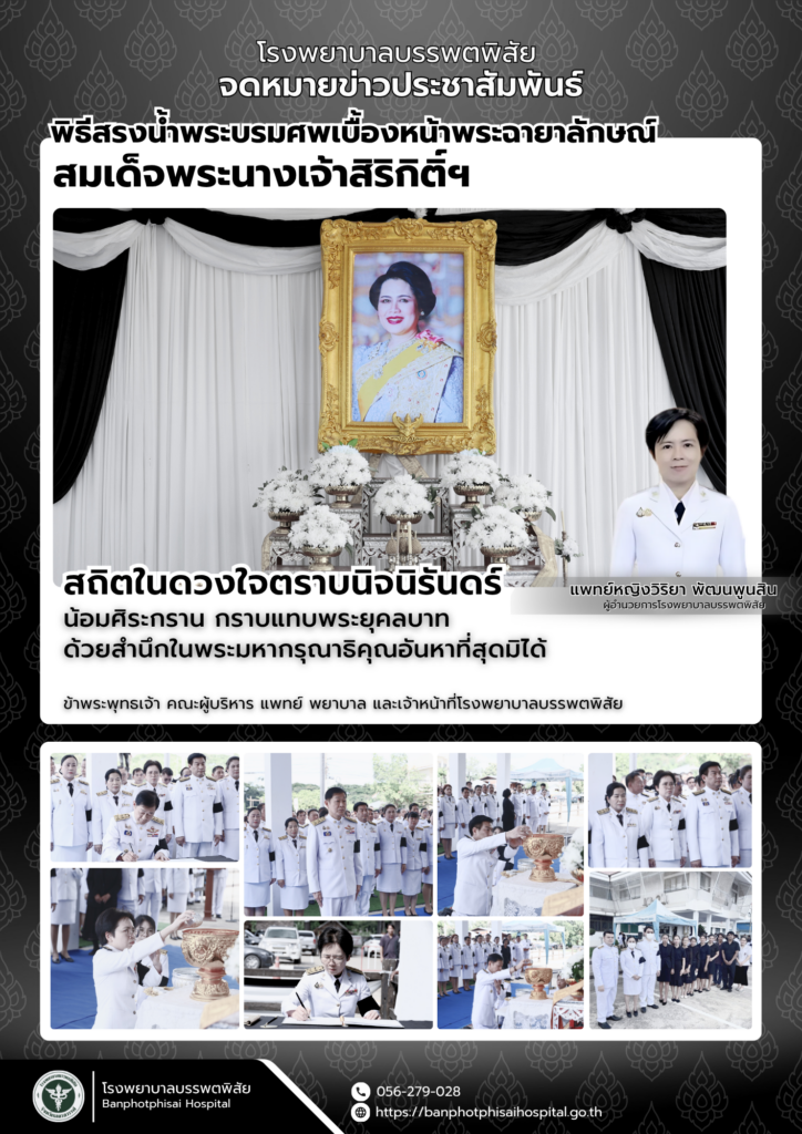 โรงพยาบาลบรรพตพิสัย เข้าร่วมพิธีสรงน้ำพระบรมศพเบื้องหน้าพระฉายาลักษณ์ สมเด็จพระนางเจ้าสิริกิติ์ พระบรมราชินีนาถ พระบรมราชชนนีพันปีหลวง เพื่อถวายความอาลัยและน้อมรำลึกถึงพระมหากรุณาธิคุณอันหาที่สุดมิได้ OnePage