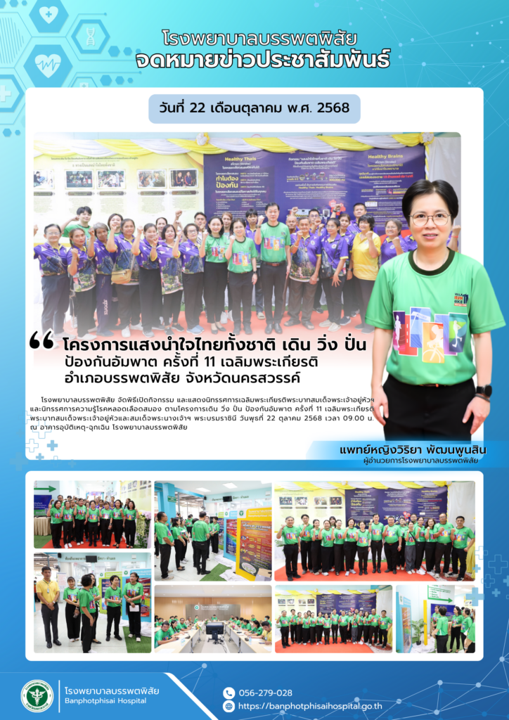 โรงพยาบาลบรรพตพิสัย ขอเชิญชวนพี่น้องชาวอำเภอบรรพตพิสัย เข้าร่วมโครงการ “แสงนำใจไทยทั้งชาติ เดิน วิ่ง ปั่น ป้องกันอัมพาต ครั้งที่ 11” เฉลิมพระเกียรติพระบาทสมเด็จพระเจ้าอยู่หัว และสมเด็จพระนางเจ้าฯ พระบรมราชินี Knowledge